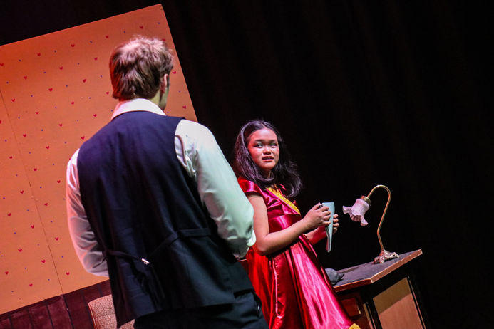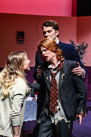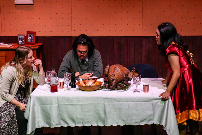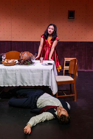 Viewers should be advised this performance contains loud noises, mild coarse language, raised voices, fake blood, banging, table slamming, depictions of violence and weapon use, graphic depictions of death on stage, and depictions of consumption of alcohol.